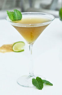 Place all ingredients in a cocktail shaker, fill with cubed ice and shake hard for a few seconds. Pour into a chilled cocktail glass. Garnish with a sprig of fresh mint.